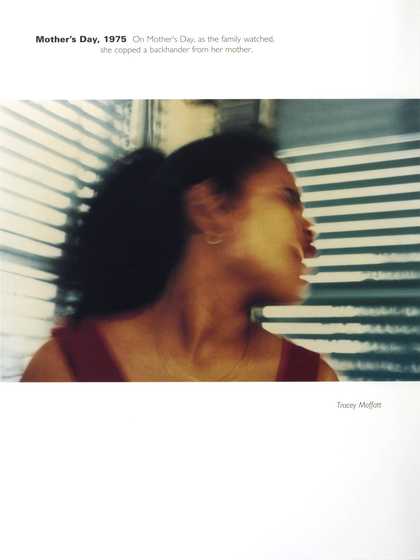 Sadly not all mother and child relationships involve tenderness or admiration. Tracey Moffatt鈥檚 Scarred for Life series explores abusive relationships. She references memories from her own childhood. The format of the works are like photo spreads from the American magazine Life. The photographs are haunting. They either show or suggest violence or vulnerability. They have captions that hint at the traumatic stories behind the pictures. Moffatt has commented: