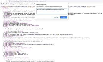 The page for the Infrequency Podcasts series from 2008, , accessed 1 August 2019. The page has lost all design and formatting information, making it almost impossible to navigate.