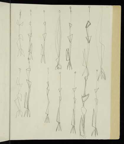 Fourteen studies, arranged in two rows, for abstract, linear figures