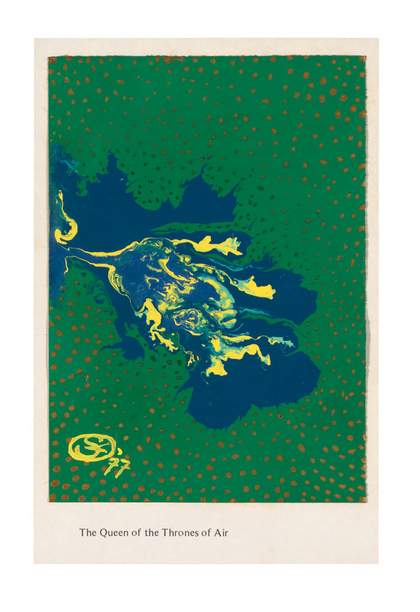 Upon contemplating DZܳdzܲ’s deck for the first time, I think of breath, exhalations of colour; the process of enamel paint moving organically through the surface of paper, tinting and altering its fibres. My breath deepens and my gaze softens. Characters and sequences are still present in the cards I pull (The Queen, The Prince, The Lords) as are the elements of Air, Water and Fire, but these all become secondary to the process of finding imagery as my gaze wanders through the colours.
